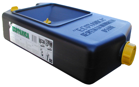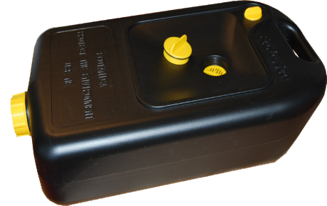 Mit komfortablem Tragegriff und Klettstreifen am Boden zum sicheren Verstauen. Einfüllstutzen kann bei Bedarf aufgeschraubt werden. Entlüftungsventil am Deckel vereinfacht das Entleeren des Kanisters